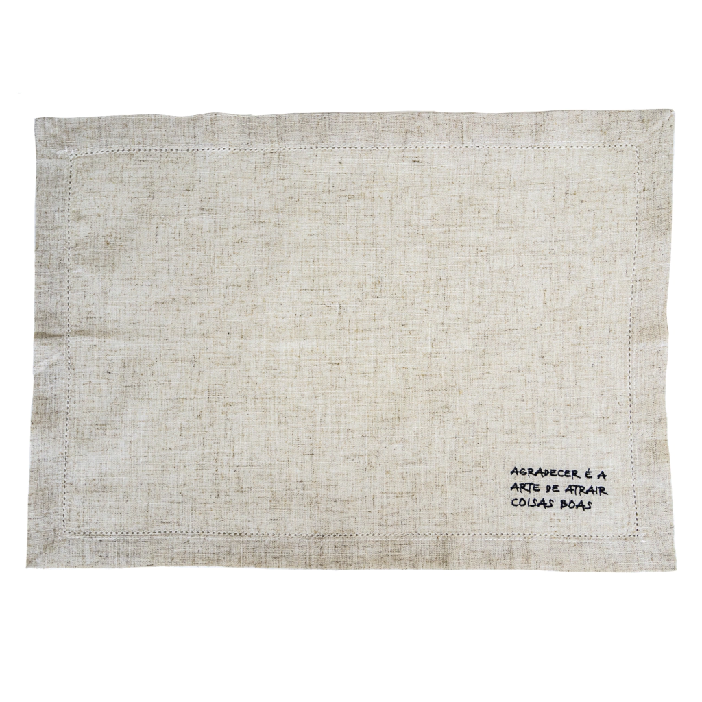 Transforme suas refeições em momentos especiais com o Jogo Americano Agradecer. Este elegante jogo americano é composto por uma peça em linho bege, que traz um ar de sofisticação para sua mesa.