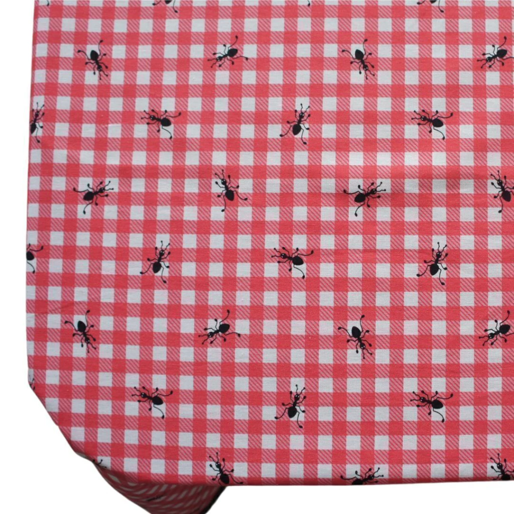 Design: Apresenta um encantador padrão xadrez em rosa e branco, decorado com adoráveis formiguinhas, que traz um charme especial e divertido para suas refeições ao ar livre.