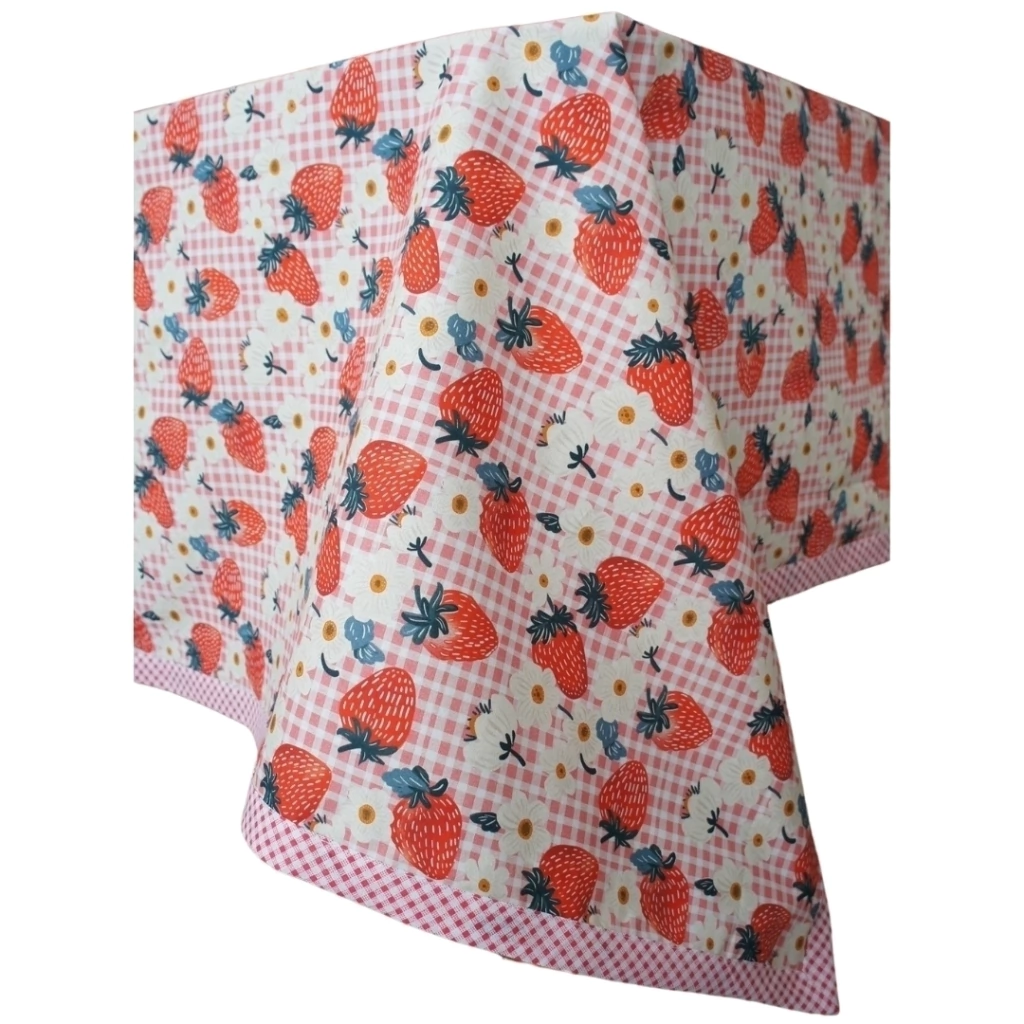 Transforme suas refeições em momentos especiais com a Toalha Quadrada Xadrez Morangos. Adquira a sua e traga alegria e estilo para sua casa!